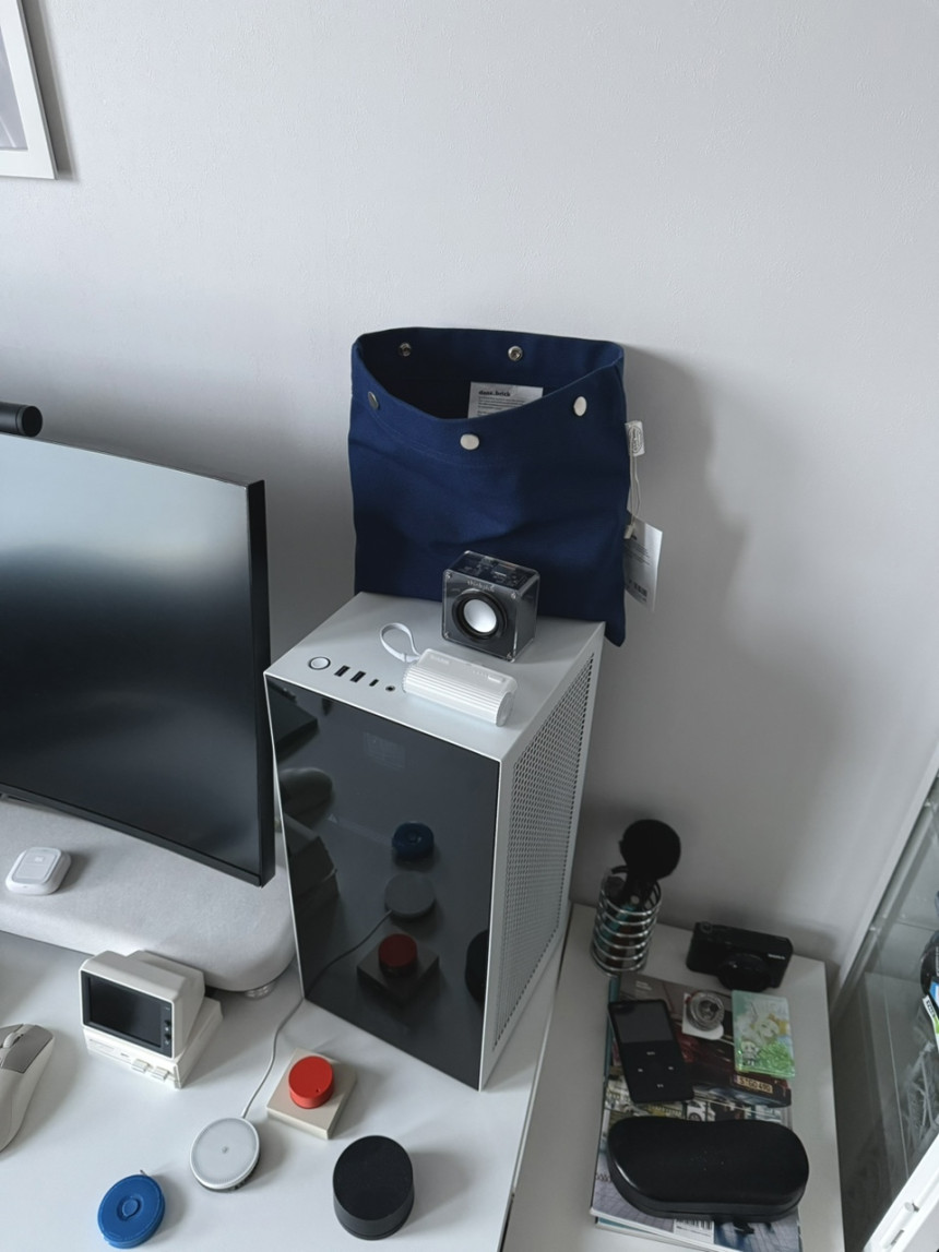 미니멀한 디자인의 스냅버튼 파우치 입니다