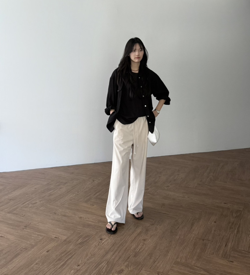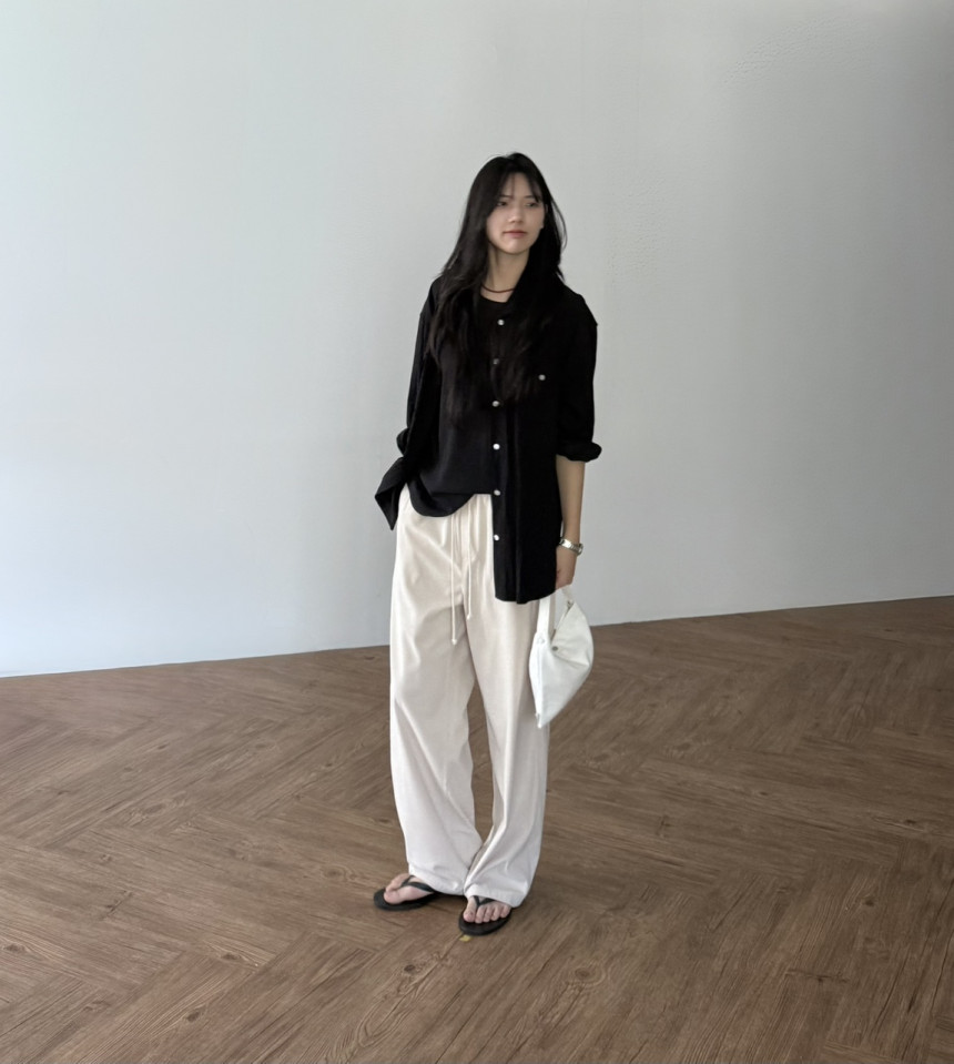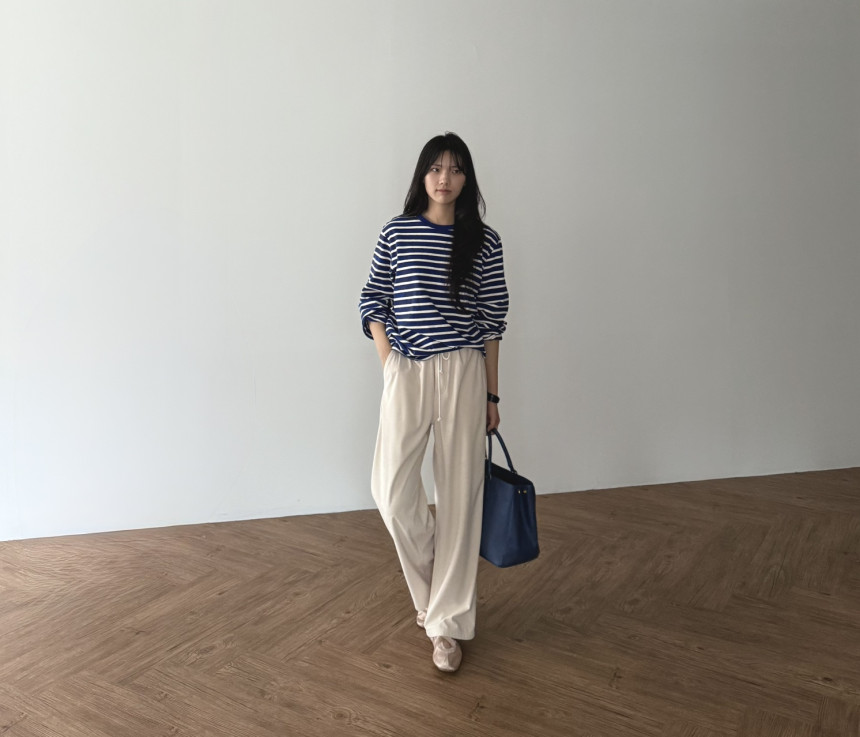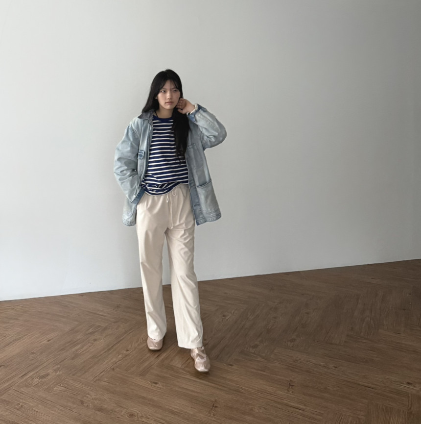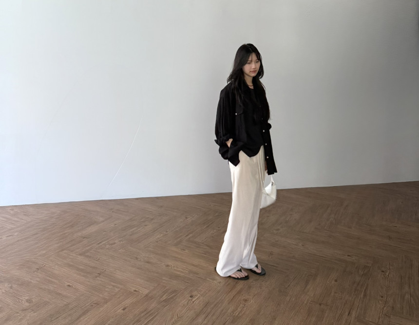 일자로 여유있게 툭 떨어지는 실루엣