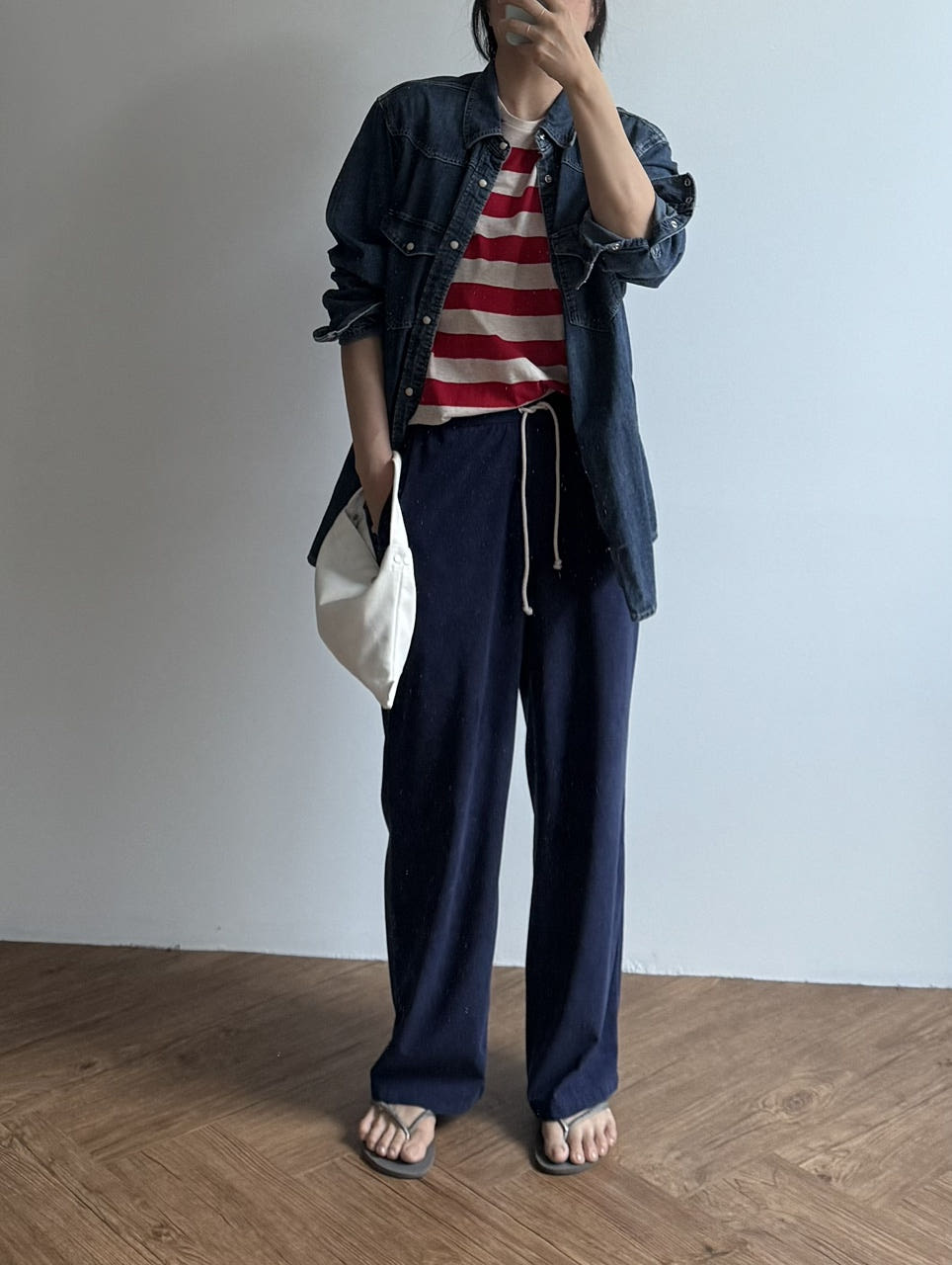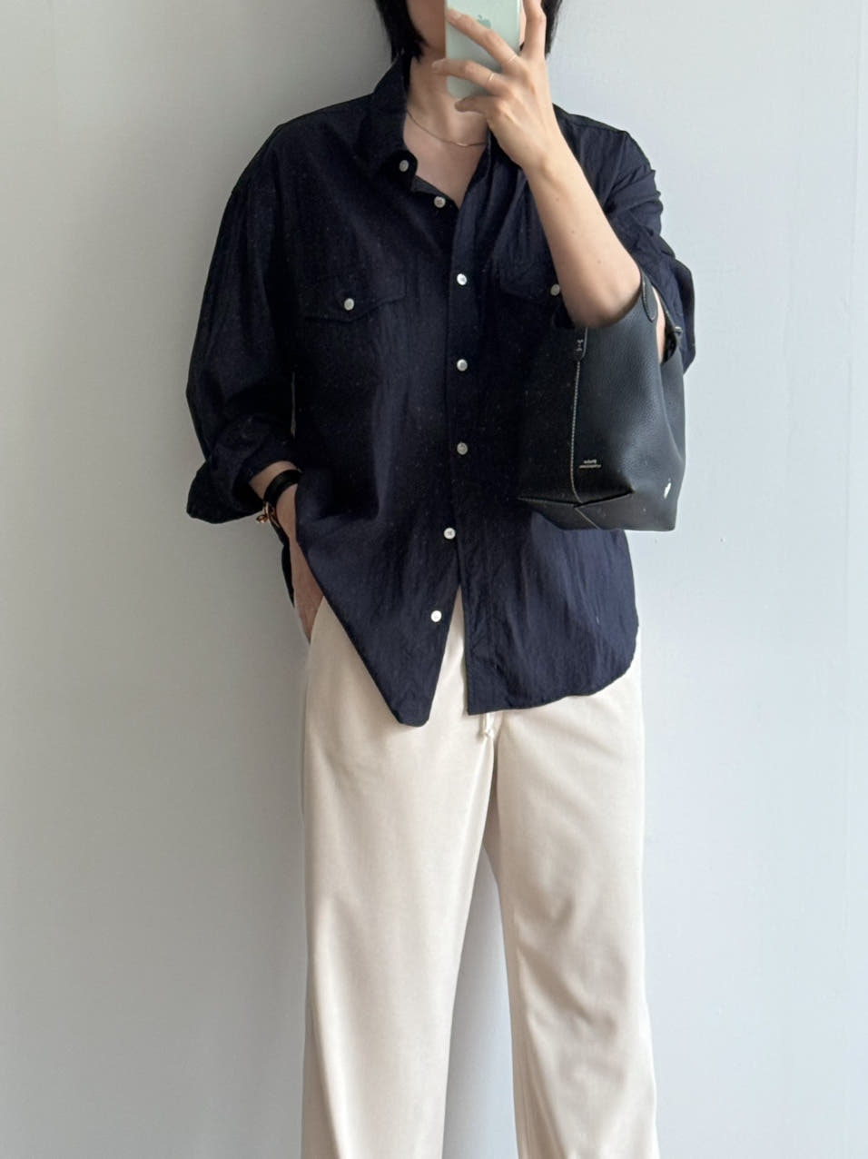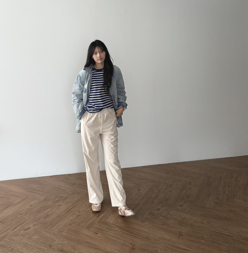 일자로 여유있게 툭 떨어지는 실루엣