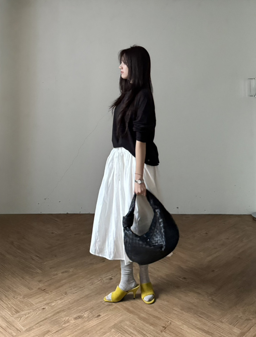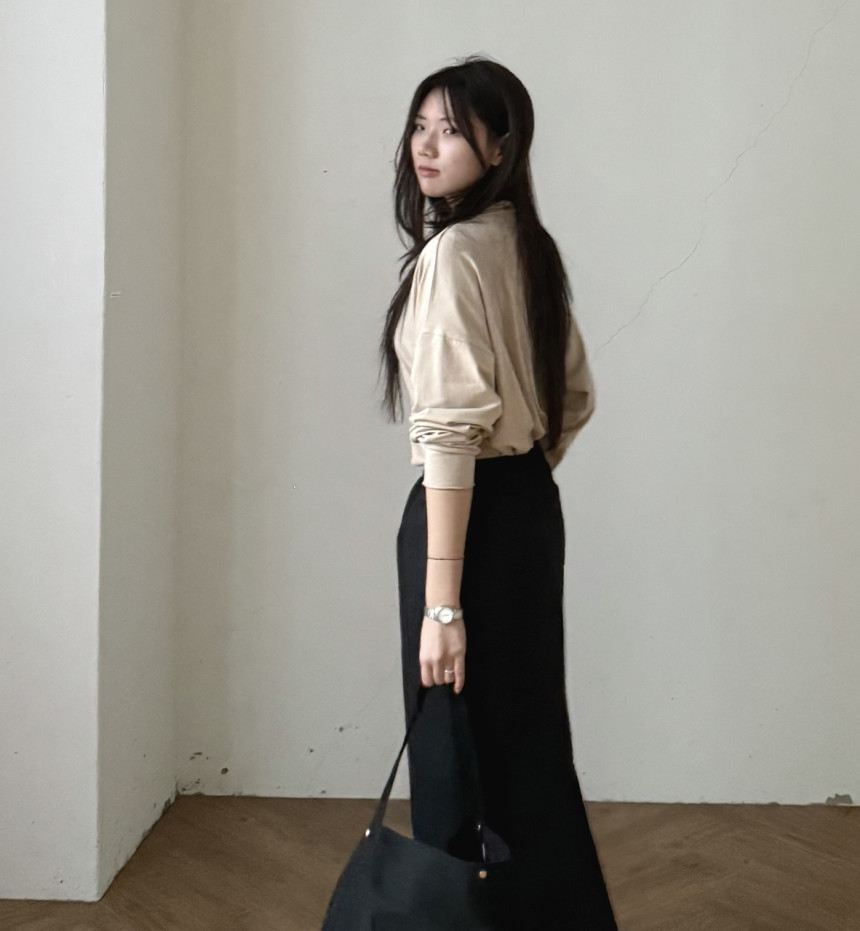 넥라인 절개없이 한겹으로 호로록 흐르는 느낌 이구요